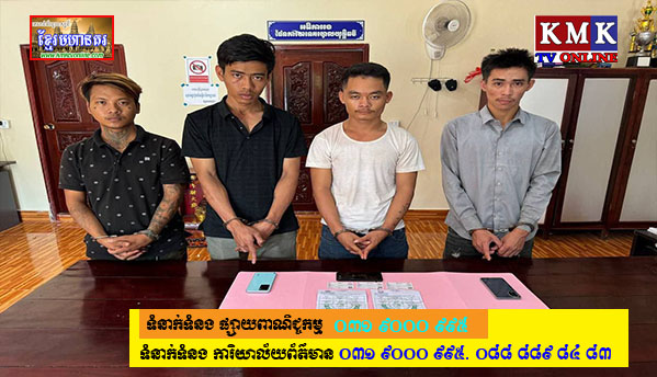 ជនសង្ស័យទាំង០៤នាក់ ខាងលើដែលនគរបាលឃាត់ ខ្លួនគឺដោយទទួលបាន ពត័មានពីប្រជាពលរដ្ឋឈ្មោះ ឈុន ម៉េងឈាង ភេទប្រុស អាយុ៤១ឆ្នាំ រស់នៅភូមិតាស្ដា ឃុំសន្តិភាព ស្រុកសំពៅលូន ខេត្តបាត់ដំបង។
