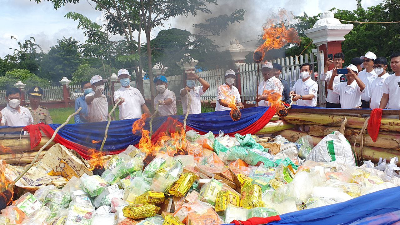 គ្រឿងញៀនជាង ៧០០គីឡូក្រាម ដែលបានមកពីការបង្ក្រាបរបស់កម្លាំងសមត្ថកិច្ច ត្រូវបានដុតបំ ផ្លាញចោល តាមអំណាចសាលក្រមតុលាការខេត្តស្ទឹងត្រែង !
