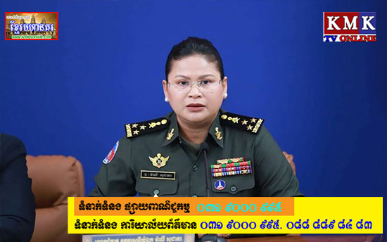 (ភ្នំពេញ)៖ ថ្លែងនៅក្នុងសន្និសីទ សារព័ត៌មាននៅវិមានសន្តិភាព ទីស្ដីការគណៈរដ្ឋមន្ត្រី នៅព្រឹក ថ្ងៃអង្គារ ទី២៩ ខែកក្កដា ឆ្នាំ២០២៥ នេះ លោកជំទាវឧត្តមសេនីយ៍ឯក ម៉ាលី សុជាតា អ្នកនាំពាក្យក្រសួងការពារជាតិ បានអះអាងថាគិតចាប់ពីម៉ោង ២៤:០០នាទី យប់ថ្ងៃទី២៨ ខែកក្កដា ឆ្នាំ២០២៥ រហូតមកទល់ពេលនេះ ពុំមានការ ប៉ះទង្គិចប្រដាប់អាវុធណាមួយ កើតឡើងទេរវាងភាគីថៃ-កម្ពុជា។