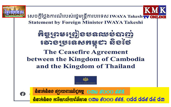 (ភ្នំពេញ)៖ សេចក្តីថ្លែងការណ៍របស់ រដ្ឋមន្ត្រីការបរទេស៖ កិច្ចព្រមព្រៀងបទឈប់បាញ់ រវាងប្រទេសកម្ពុជា និងថៃ