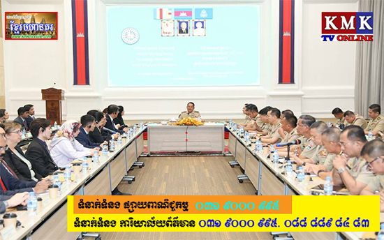 (ភ្នំពេញ)៖ ឯកឧត្តម នាយឧត្តមសេនីយ៍ ស ថេត អគ្គស្នងការនគរបាលជាតិ ណែនាំឱ្យក្រុមការងារព័ត៌មាន ទាន់ហេតុការណ៍ (HOTLINE) ជាមួយជនបរទេស ពង្រឹងសន្ដិសុខ និងសុវត្ថិភាពជូនវិនិយោគិន និងភ្ញៀវទេសចរបរទេស។