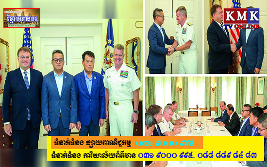 (ភ្នំពេញ)៖ កាលពីថ្ងៃទី០៦ខែសីហា ឆ្នាំ២០២៥ «ថ្ងៃនេះខ្ញុំបានជួបជាមួយ នាយឧត្តមនាវី Samuel Paparo មេបញ្ជាការ បញ្ជាការដ្ឋានឥណ្ឌូប៉ាស៊ីហ្វិក សហរដ្ឋអាមេរិក (USINDOPACOM) និងឯកឧត្តម Edgard Kagan ឯកអគ្គរដ្ឋទូតសហរដ្ឋអាមេរិក ប្រចាំនៅប្រទេសម៉ាឡេស៊ី។