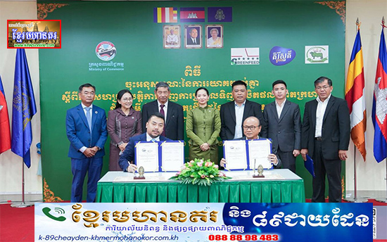 (ភ្នំពេញ)៖ នាព្រឹកថ្ងៃចន្ទ ទី១១ ខែសីហា ឆ្នាំ២០២៥ នៅទីស្ដីការ ក្រសួងពាណិជ្ជកម្ម លោកជំទាវ ចម និម្មល រដ្ឋមន្ត្រីក្រសួងពាណិជ្ជកម្ម អញ្ជើញជាអធិបតីភាព ក្នុងពិធីចុះអនុស្សរណៈ នៃការយោគយល់គ្នា ស្តីពី កិច្ចសហប្រតិបត្តិការ ជំរុញការប្រមូលទិញ ផលិតផលពោតក្រហម ដំឡូងមី និងវត្ថុធាតុដើម ដទៃទៀតក្នុងស្រុក សម្រាប់ផលិតចំណីសត្វ ជាមួយក្រុមហ៊ុន ផលិតចំណីសត្វ ចំនួន ៣ រួមមាន៖ ក្រុមហ៊ុន ខ្មែរ ហ្វ្រេស មីល ឯ.ក (Khmer Fresh Milk), ក្រុមហ៊ុនផលិតចំណីសត្វ គ្រីនហ្វីត (GREENFEED Cambodia) និងសហគ្រាសផលិត ចំណីសត្វដង្ខៅប៉ាង ដោយមានវត្តមាន អញ្ជើញចូលរួមពី ឯកឧត្តម លោកជំទាវ ថ្នាក់ដឹកនាំ ក្រសួងពាណិជ្ជកម្ម តំណាងក្រុមហ៊ុន ផលិតចំណីសត្វ និងមន្ត្រីពាក់ព័ន្ធជាច្រើនរូប។