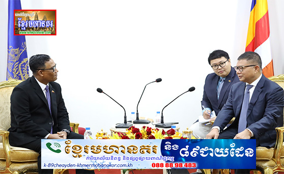 (ភ្នំពេញ)៖ នាព្រឹកថ្ងៃទី២១ ខែសីហា ឆ្នាំ២០២៥ ឯកឧត្តមសន្តិបណ្ឌិត ឆៃ ស៊ីណារិទ្ធ ទេសរដ្ឋមន្ត្រី ទទួលបន្ទុកបេសកកម្មពិសេស និងជាប្រធាន លេខាធិការដ្ឋានគណៈ កម្មការចំពោះកិច្ចប្រយុទ្ធ ប្រឆាំងការឆបោក តាមប្រព័ន្ធបច្ចេកវិទ្យា (គ.ប.ឆ.ប.) បានអនុញ្ញាតឱ្យ ឯកឧត្តម ច សូ មីន (Kyaw Soe Min) ឯកអគ្គ រដ្ឋទូតសាធារណរដ្ឋ សហភាពមីយ៉ាន់ម៉ា ប្រចាំកម្ពុជា និងសហការី ចូលជួបសម្តែងការគួរសម និងពិភាក្សាការងារ។