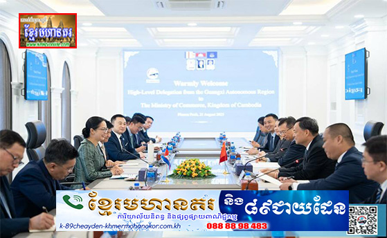 (ភ្នំពេញ)៖ នារសៀលថ្ងៃ ព្រហស្បតិ៍ ទី២១ ខែសីហា ឆ្នាំ២០២៥ នៅទីស្តីការ ក្រសួងពាណិជ្ជកម្ម លោកជំទាវ ចម និម្មល រដ្ឋមន្ត្រីក្រសួងពាណិជ្ជកម្ម បានអនុញ្ញាតជូន ឯកឧត្តមអគ្គនាយក Zhou Yijue និងគណៈប្រតិភូ ជាន់ខ្ពស់មកពី តំបន់ស្វយ័តក្វាងស៊ី និងតំណាងក្រុមហ៊ុន COFCO Biotechnology Co., Ltd. ចូលជួបសម្តែងការគួរសម និងពិភាក្សាការងារ ព្រមទាំងបានអញ្ជើញ ជាអធិបតីក្នុងពិធី ចុះហត្ថលេខា លើអនុស្សរណៈ នៃការយោគយល់គ្នា (MoU) រវាងក្រសួងពាណិជ្ជកម្ម ជាមួយនិងក្រុមហ៊ុន COFCO Biotechnology Co., Ltd. ដើម្បីនាំចេញដំឡូងមីស្ងួតចំនួន ៥០០ ០០០ តោនទៅកាន់ ប្រទេសចិនសម្រាប់ ឆ្នាំ២០២៥-២០២៦។