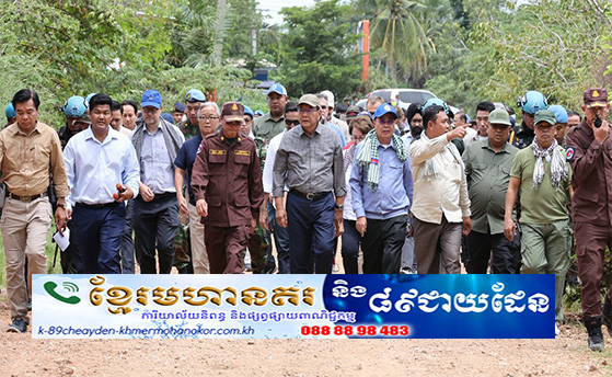(ភ្នំពេញ)៖ ឯកឧត្តម ប្រាក់ សុខុន ឧបនាយករដ្ឋមន្ត្រី រដ្ឋមន្ត្រីក្រសួងការបរទេស និងសហប្រតិបត្តិការអន្តរជាតិ នៃព្រះរាជាណាចក្រកម្ពុជា អញ្ជើញដឹកនាំបណ្តា អង្គទូតប្រចាំនៅកម្ពុជា ទីភ្នាក់ងារអង្គការសហ ប្រជាជាតិ (UN) និងអង្គការមិនមែនរដ្ឋាភិបាល ចុះពិនិត្យមើលសកម្មភាព ទន្ទ្រានកាន់កាប់ដីជា ឯកតោភាគីរបស់យោធាថៃ កាលពីពេលថ្មីៗនេះ តាមរយៈការរាយបន្លាលួស សំណាញ់ រនាំង និងដាក់កង់ឡាន នៅភូមិជោគជ័យ ឃុំអូរបីជាន់ ស្រុកអូរជ្រៅ ខេត្តបន្ទាយមានជ័យ នាព្រឹកថ្ងៃទី២២ ខែសីហា ឆ្នាំ២០២៥។