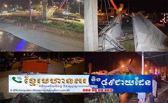 (ប្រទេសថៃ)៖ យោងតាមការចេញ ផ្សាយរបស់សារព័ត៌មាន Khaosod នៅយប់ថ្ងៃទី២២ ខែសីហា វេលាម៉ោង៨ និង២០នាទីយប់ មានហេតុការណ៍ដ៏រន្ធត់ បាក់ធ្នឹមបេតុងទម្ងន់១១៦តោន របស់ស្ពានអាកាស ថ្មើរជើងទៅលើផ្លូវលេខ៣១៧ (ចាន់ថាបុរី-ស្រះកែវ) ក្នុងស្រុកMakham ខេត្តចាន់ថាបុរី។