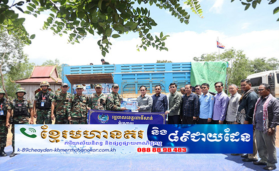(ខេត្តពោធិ៍សាត់)៖ ឯកឧត្តម ខូយ រីដា អភិបាលនៃគណៈ អភិបាលខេត្តពោធិ៍សាត់ នាថ្ងៃទី២៧ ខែសីហា ឆ្នាំ២០២៥នេះ បាននាំយកស្បៀងអាហារ និងថ្នាំពេទ្យមួយចំនួនធំ ជាអំណោយដែល បានមកពីការចូលរួម ក្នុងស្មារតីស្នេហាជាតិ របស់ប្រជាជនខេត្តពោធិ៍សាត់ និងសប្បុរសជន ព្រមទាំងសាខា សមាគមនារីកម្ពុជា ដើម្បីសន្តិភាព និងអភិវឌ្ឍន៍ខេត្ត មកប្រគល់ជូនដល់ កងកម្លាំងជួរមុខ ដែលកំពុងឈរជើង ការពារបូរណភាពទឹកដី នៅទិសខេត្តព្រះវិហារ ព្រំប្រទល់កម្ពុជា-ថៃ។