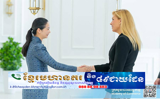 (ភ្នំពេញ)៖ នាព្រឹកថ្ងៃសុក្រ ទី២៩ ខែសីហា ឆ្នាំ២០២៥ នៅទីស្តីការ ក្រសួងពាណិជ្ជកម្ម លោកជំទាវ ចម និម្មល រដ្ឋមន្រ្តីក្រសួង ពាណិជ្ជកម្ម បានទទួលជួបពិភាក្សា ការងារជាមួយគណៈ ប្រតិភូសភាសហរដ្ឋ អាមេរិក ដែលដឹកនាំដោយ លោកជំទាវ Beth Van Duyne ជាសមាជិក សភាប្រចាំរដ្ឋ Texas, ឯកឧត្តមវេជ្ជបណ្ឌិត Richard McCormick សមាជិកសភាប្រចាំរដ្ឋ Georgia និង ឯកឧត្តម Suhas Subraanyam សមាជិកសភាប្រចាំរដ្ឋ Virginia ដើម្បីពង្រឹង និងពង្រីកកិច្ចសហ ប្រតិបត្តិការសេដ្ឋកិច្ច ពាណិជ្ជកម្ម និងវិនិយោគទ្វេភាគី។