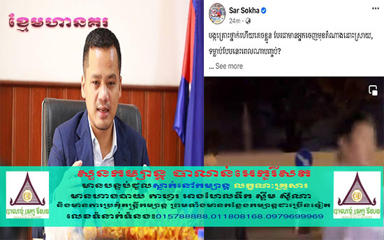 (ភ្នំពេញ)៖ តាមរយៈវីដេអូគ្រោះ ថ្នាក់ចរាចរណ៍មួយ ដែលភាគីម្ខាងបាន គេចចេញពីកន្លែងហេតុ ដោយមានមនុស្ស ផ្សេងចេញមុខជាអ្នក តំណាងដោះស្រាយ ឯកឧត្តម ស សុខា រដ្ឋលេខាធិការ ក្រសួងអប់រំ យុវជន និងកីឡា បានបង្ហោះសារតាម ផេកផ្លូវការរបស់ខ្លួន យ៉ាងដូច្នេះថា ៖ ជាការកត់សម្គាល់ គ្រោះថ្នាក់ចរាចរណ៍ មួយចំនួនកើតឡើង ភាគីបង្កតែងគេចខ្លួន ពីកន្លែងកើតហេតុ តាមមធ្យោបាយផ្សេងៗ។ ខ្លាចខ្មាសគេជារឿងមួយ។ ការគេចឱ្យផុតពីការ ទទួលខុសត្រូវទាំងរដ្ឋប្បវេណី និងព្រហ្មទណ្ឌ ក៏ជារឿងមួយដែរ។