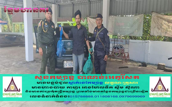 (ខេត្តមណ្ឌលគិរី)៖ កម្លាំងមូលដ្ឋាន កងរាជអាវុធហត្ថ ស្រុកកែវសីម៉ា ដឹកនាំដោយលោក វរសេនីយ៍ត្រី ប៉ៃ លិន មេបញ្ជាការមូលដ្ឋាន កងរាជអាវុធហត្ថស្រុកកាលពី ថ្ងៃទី០២ ខែមីនា ឆ្នាំ២០២៣ បានឃាត់រថយន្ត០១គ្រឿង ម៉ាកកាមរីហើម ពណ៌សំបកឪឡឹក  ស្លាកលេខភ្នំពេញ 2G 9297 ត្រង់ចំណុចផ្ទះក្រហម ភូមិអូរអាម ឃុំស្រែកខ្ទុម ស្រុកកែវសីមា ខេត្តមណ្ឌលគិរី ក្រោយឃាត់រថយន្ត បានរកឃើញមាន សត្វសំពោចចំនួន០៥ក្បាល បំរុងជួញដូរឆ្លងដែនទៅ ប្រទេសវៀតណាម ជនសង្ស័យឈ្មោះ ភាព ម៉េងលី ភេទប្រុស អាយុ២៨ឆ្នាំ មុខរបរបើកបររថយន្ត ទីលំនៅបច្ចុប្បន្ន ភូមិអន្រ្ទង់  ឃុំសែនមនោរម្យ ស្រុកអូររាំង ខេត្តមណ្ឌលគិរី។