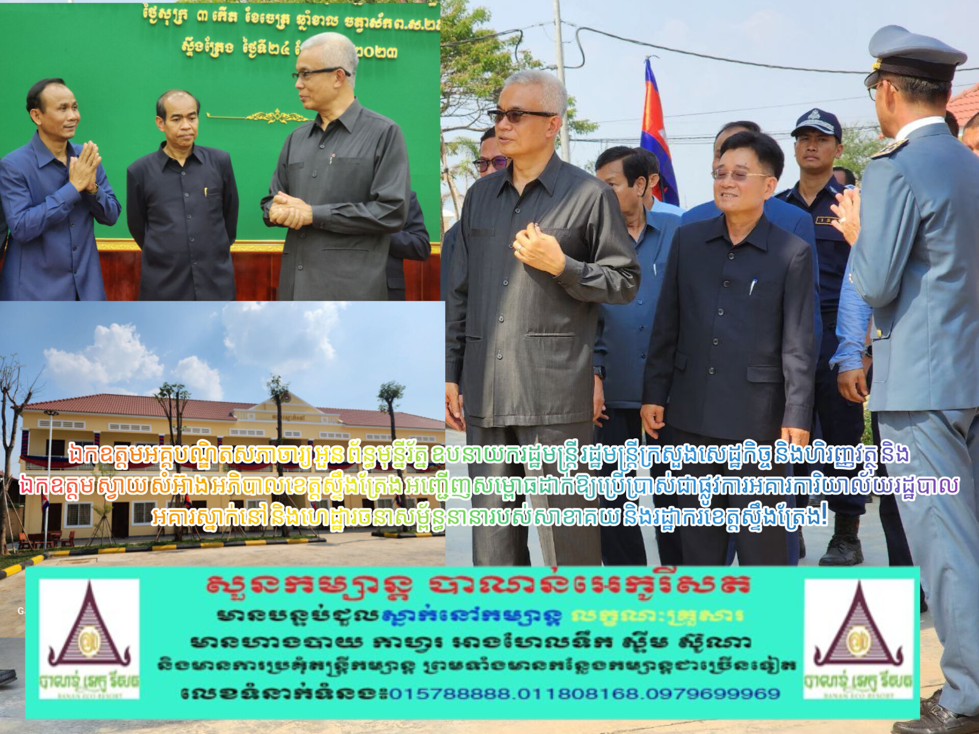 ឯកឧត្តមអគ្គបណ្ឌិតសភាចារ្យ អួន ព័ន្ធមុន្នីរ័ត្ន ឧបនាយករដ្ឋមន្ត្រី រដ្ឋមន្ត្រីក្រសួងសេដ្ឋកិច្ច និងហិរញ្ញវត្ថុ និងឯកឧត្តម ស្វាយ សំអ៊ាង អភិបាលខេត្តស្ទឹងត្រែង អញ្ជើញសម្ពោធដាក់ឱ្យប្រើប្រាស់ជាផ្លូវការអគារការិយាល័យរដ្ឋបាល អគារស្នាក់នៅ និងហេដ្ឋារចនាសម្ព័ន្ធនានារបស់សាខាគយ និងរដ្ឋាករខេត្តស្ទឹងត្រែង!